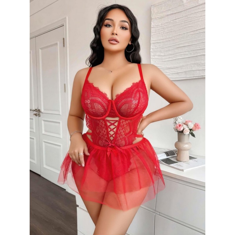 Ensemble lingerie sext GRANDE TAILLE-Rouge